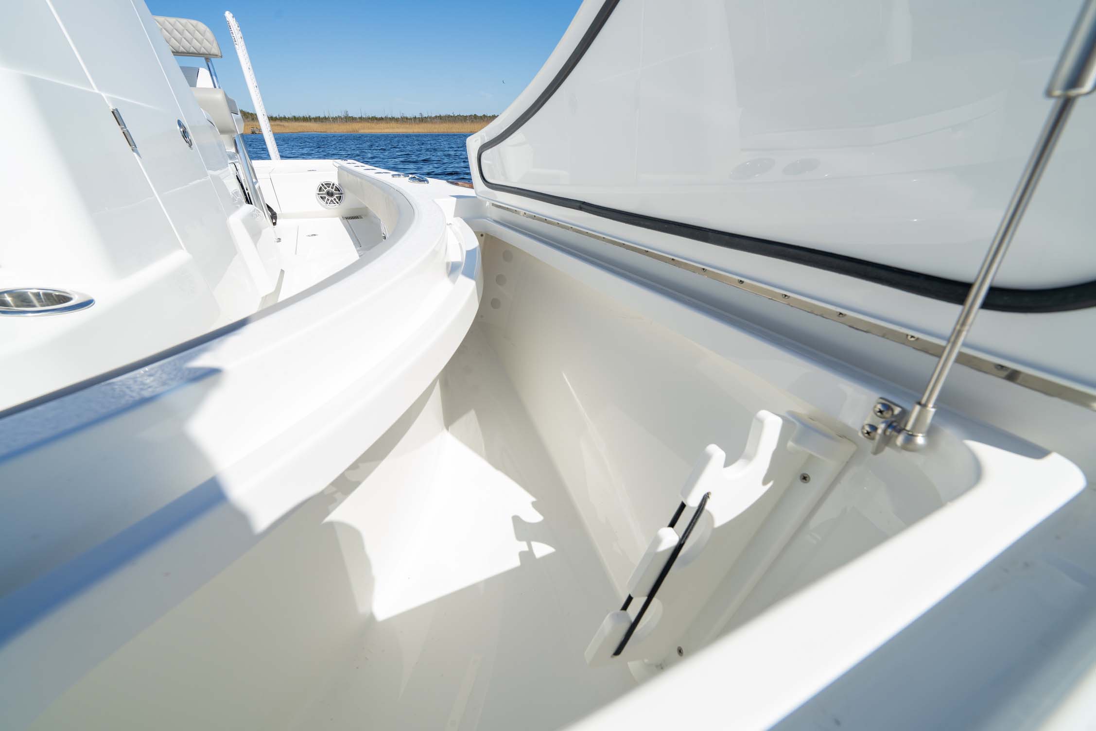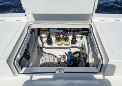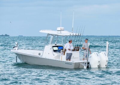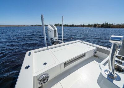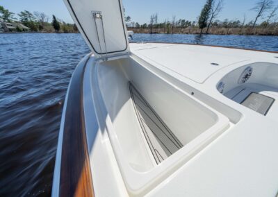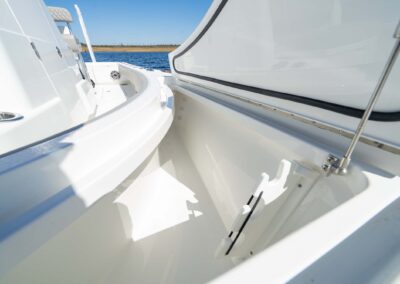 Anglers will be delighted by the V-28’s abundance of lockable rod storage options. With up to four rod lockers under the bow casting deck, you can safely store up to six rods up to 7′ in length in the aft lockers, and up to ten rods up to 9′ fly rods in the forward lockers. This design ensures that you have plenty of space for your fishing gear without sacrificing room for other essentials like tackle and cleaning supplies.