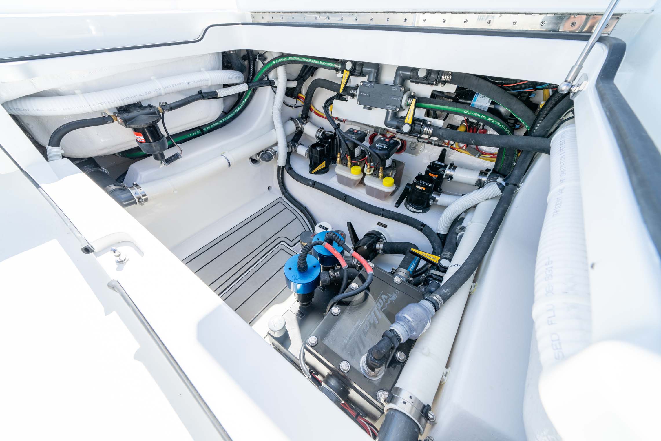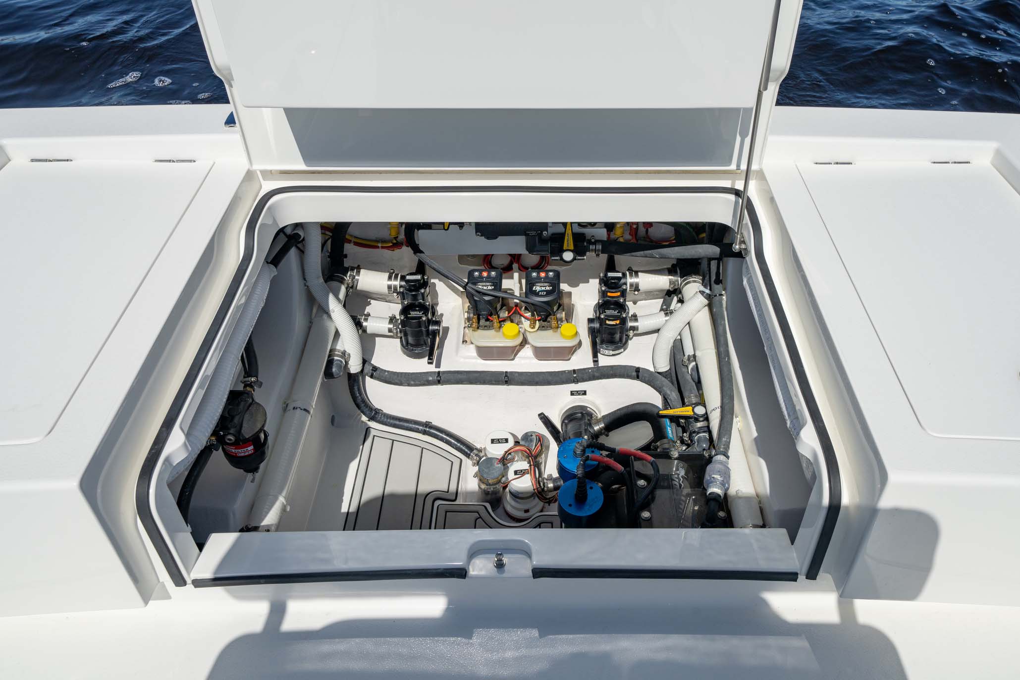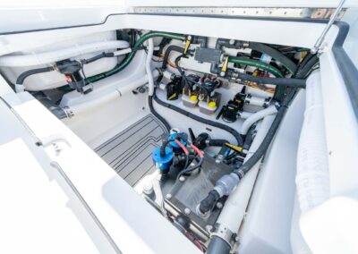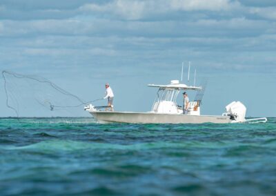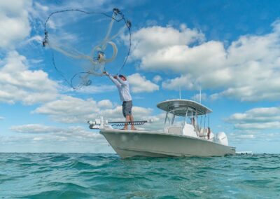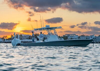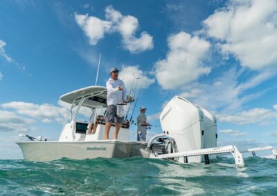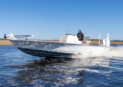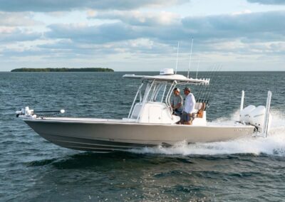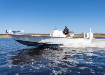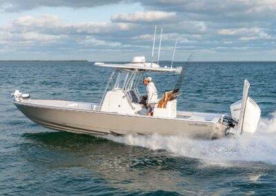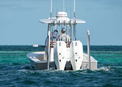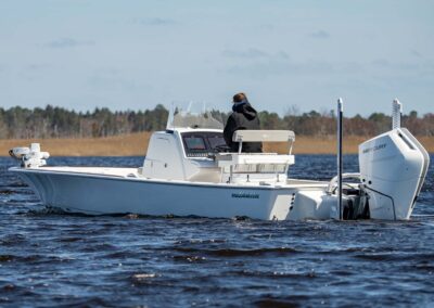 The V-28 Bay boasts a shallow draft of 18″ to 22″, making it the perfect vessel for navigating through shallow water bays and reefs. Equipped with dual 25-gallon live wells on the aft casting platform, which can be expanded to a whopping 120 gallons, this boat features an effortless plumbing system connected to a Whale Gulper Pump for seamless cleaning.