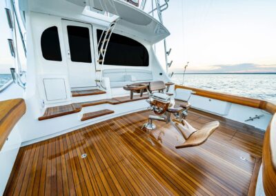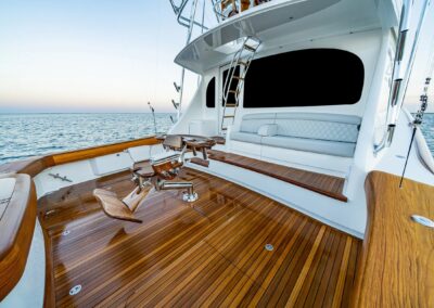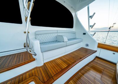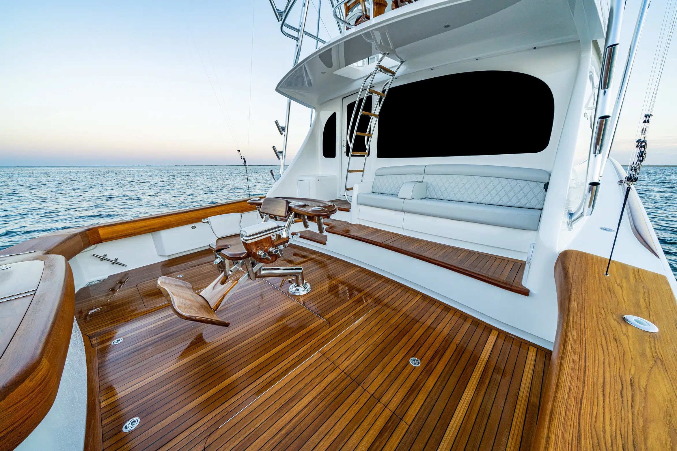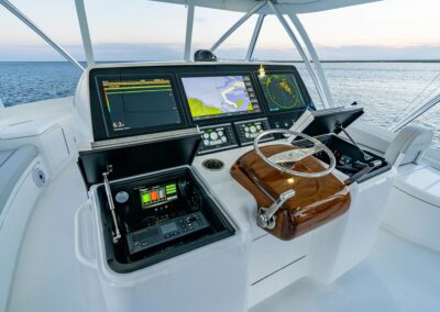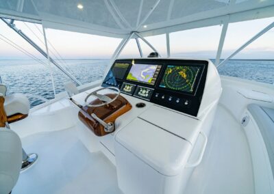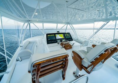 Step into the 180-square-foot cockpit of the Viking 64 C and experience unparalleled freedom of movement, with easy access to storage and service areas. This space is equipped with flush rod holders, efficient washdown systems, a transom fish box with a live well, and side lockers for extra storage. The observation mezzanine offers a comfortable, dry spot to relax, complete with freezer and cooler space for refreshments.
