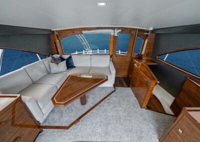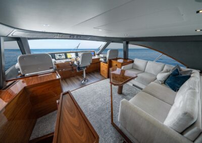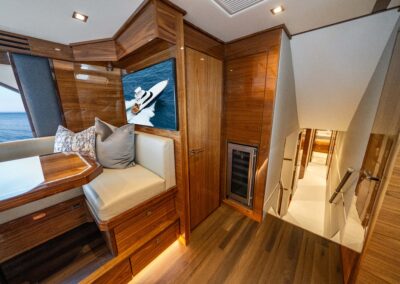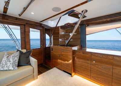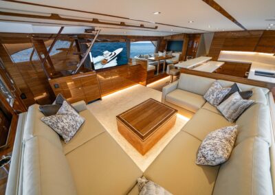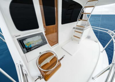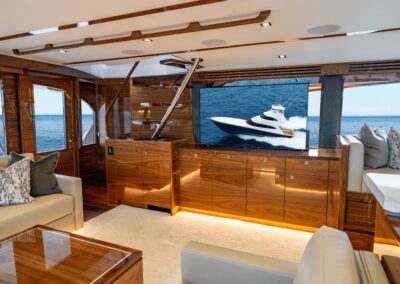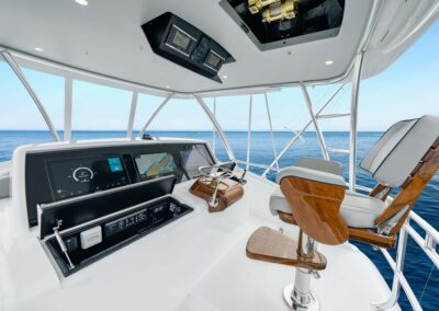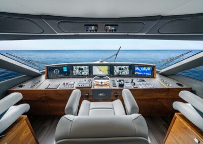 Explore the versatility of the 82 Sky Bridge with its innovative enclosed bridge and convertible flybridge design above. Boasting a sleek console, raised helm pod, radio boxes, and cutting-edge electronics, this model seamlessly caters to both sportfishing aficionados and cruising enthusiasts, offering the ultimate fusion of functionality and luxury.