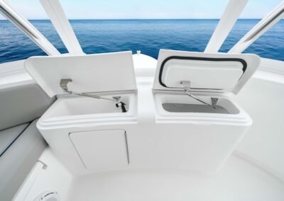 From the forward insulated cooler to the freshwater sink and integrated storage solutions, guests can unwind and savor the breathtaking views in style and comfort.
